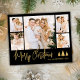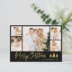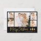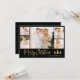Modern Black and Gold Elegant Calligraphy Script 5 Photo Collage Christmas Cards. This festive, minimalist, five (5) photo holiday greeting card features a pretty photo collage, 3 pine tree doodle, „Merry Christmas” greeting text which is written in a whimsical hand lettered signature font type in Black and Gold. On the reverse side snowy dots pattern with a nice family photo. Pretty greeting card for your family and friends in Winter Holiday season.