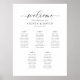 Classic Calligraphy Script Wedding Seating Plan. Welcome sign. Personalised Simple Minimalist Seating Chart for 50 guests (5 tables). Just click the customise further link, shown under the text personalisation area on the right, and choose your custom colour background. This sign poster template makes it fast and easy to create stunning additions to your wedding decor. Signs can be enlarged, there are many sizes to choose from, as well as options for custom framing and matting.