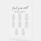 Classic Calligraphy Script Wedding Seating Plan with a translucent white background. Find Your Seat Sign. Personalised Simple Minimalist Seating Chart for 80 guests (8 tables). Just click the customise further link, shown under the text personalisation area on the right, and choose your custom colour background. This sign poster template makes it fast and easy to create stunning additions to your wedding decor. Signs can be enlarged, there are many sizes to choose from, as well as options for custom framing and matting.