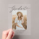 Honour your graduate’s achievement with these modern acrylic graduation announcements featuring a sleek and stylish design. The graduate’s photo takes centre stage, with “Graduate” elegantly overlaying the image in a sophisticated black calligraphy script on a clear acrylic background. Personalise with the graduate’s name, school, and graduation year to create a unique and memorable keepsake. Perfect for high school and college graduates, this minimalist yet elegant announcement is a timeless way to share this special milestone with family and friends.