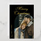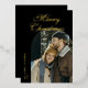Elegant Script Arch Newlyweds Photo Black Gold Foil Holiday Card