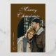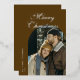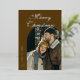 Elegant Script Arch Newlyweds Photo Brown Silver Foil Holiday Card
