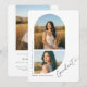 Mark the milestone with this grad graduate announcement featuring a simple modern elegant arch photo and soft photo collage layout. Designed for any high school college university graduate, it blends minimalist classic class of style with stylish trendy script calligraphy for a timeless look. Easily personalize names, details, and images to create a meaningful college graduation announcement. Personalize yours today.