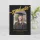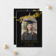 Celebrate your daughter’s graduation in style with this elegant black and gold graduation announcement card—perfect for high school, college, or university graduates. This trendy arch photo graduation invitation features a sleek black background paired with luxurious gold script calligraphy, creating a modern and eye-catching design that beautifully honours this important milestone. Easily personalise the layout with your graduate’s favourite senior portrait and add custom event details using the intuitive, editable template. Whether you’re planning a graduation party, open house, or simply sending formal graduation announcements, this printable photo card is a meaningful and stylish way to share her achievement with loved ones. Designed by artist Catherine Sweetman, this personalised graduation invitation blends timeless elegance with a contemporary twist, making it a cherished keepsake. Perfect for 2025 graduation announcements, senior photo cards, black and gold graduation invitations, and custom grad party invites for daughters. An ideal choice for parents seeking stylish graduation cards for girls with photos