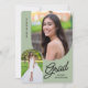 Invite your friends and family to your Graduation Party with this elegant, 2 photo, sage green and black invitation. The design features photos with an arched edge and offers custom text for your party details.