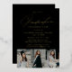 Celebrate the graduate in style with these elegant gold foil graduation party invitations, featuring a sleek black background and shimmering gold foil lettering for a sophisticated touch. The modern calligraphy script highlights key details, while three customisable photos at the bottom create a unique and personal design. Perfect for high school or college graduates, these luxe invitations set the tone for an unforgettable celebration. Personalise with the graduate’s name, party details, and photos to make this invitation truly one-of-a-kind!