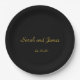 Elegant Script Black and Gold Wedding Party Paper Plate