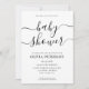 Elegant Script Black and White Baby Shower Invitation. Invite your family and friends with this minimal modern wedding baby shower template. Personalise this elegant and stylish invitation with names, venue, date and time.