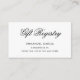 Elegant baby shower enclosure card featuring a simple design with "Gift Registry" in a chic black script along with the name of the mum-to-be and the stores she is registered at in a sans serif font, over a white background. This stylish design is gender neutral and works for a boy or a girl baby shower.