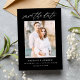 Announce your upcoming nuptials in style with our Elegant Script photo save the date card. The elegant save the date card features "save the date" in a white modern calligraphy script with your engagement photo displayed below against a black background. Personalise the simple save the date card by adding your names, wedding date, and wedding location. The minimalist save the date card reverses to a solid black background or a colour of your choice.
