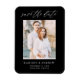 Announce your upcoming nuptials in style with our Elegant Script photo save the date magnet. The elegant save the date magnet features "save the date" in a white modern calligraphy script with your engagement photo displayed below against a black background. Personalise the simple save the date magnet by adding your names, wedding date, and wedding location.
