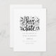 This pretty script black and white save the date announcement postcard features laurel leaves and hearts. Add your special announcement details in a classic text.