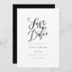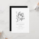 Simple black and white elegant script save the date announcement card with a love heart. Add your special announcement details in a classic text.