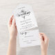 Elegant Script Black and White Simple Wedding All In One Invitation