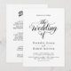 This elegant black-and-white wedding invitation is perfect for a modern wedding. The simple design features elegant black calligraphy on a clean white background. The invitation card includes the wedding details on the back instead of paying for a separate enclosure card.