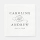 A classic wedding napkin featuring the couples names and elegant calligraphy script and with event date.