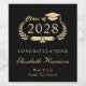 Elegant black and gold graduation party wine labels featuring "Class of" in an illustration of laurel wreath incorporating a grad cap and diploma, the graduate's name in a formal script, and "Congratulations" and their school name in modern classic typography.