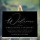 Simple and modern unplugged wedding sign featuring "Welcome" displayed in a modern white calligraphy script with a black acrylic background. Personalise the acrylic unplugged wedding sign by adding a custom message and your names. The black and white unplugged ceremony sign was designed to coordinate with our Modern Elegance wedding collection and is available in other colours.