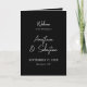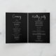 This elegant script black and white bi-folded wedding program adds a timeless and graceful touch to your ceremony. Featuring romantic handwritten-style calligraphy, a clean layout, and a classic black and white colour palette, this folded program is perfect for traditional, formal, or modern weddings. The bi-fold format provides ample space to include your ceremony order, bridal party, readings, or personal messages. A sophisticated keepsake that beautifully complements your wedding invitation suite.