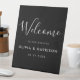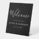 Elegant Script Black White Wedding Welcome Pedestal Sign