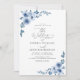 elegant script blue floral wedding invitation