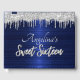 Have guests sign their names with this sweet 16 guest book. The design features an elegant script with blue metallic background with silver glitter drips. Customise with the birthday girl's name to make a keepsake for her wonderful day!