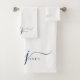 Elegant Script Blue Monogram Initials Name Bath Towel Set