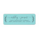 Chic, modern and simple wedding return address label with your names in off-black elegant handwritten script calligraphy with a stylish touch of rustic foliage on a turquoise blue background. Simply add your names and address. Exclusively designed for you by Happy Dolphin Studio. If you need any help or matching products please contact us at happydolphinstudio@outlook.com. We're happy to help you make your wedding the most beautiful day!