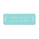 Chic, modern and simple wedding return address label with your names in white elegant handwritten script calligraphy with a stylish touch of rustic foliage on a turquoise blue background. Simply add your names and address. Exclusively designed for you by Happy Dolphin Studio. If you need any help or matching products please contact us at happydolphinstudio@outlook.com. We're happy to help you make your wedding the most beautiful day!