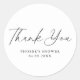 Make your bridal shower guests feel special with these Elegant Script Bridal Shower Favour Stickers. The minimalist black and white design adds a touch of classic elegance to your event. These simple yet chic stickers are the perfect way to show your appreciation to everyone who attended your bridal shower. The script font reads "Thank You" in a clean, modern style that matches any bridal shower theme. Place these favour stickers on gifts, treat bags, or notebooks to add a heartfelt personal touch for each guest. They'll serve as a lasting memento of your special day that guests can use to decorate items long after the party ends. Show your wedding party how much their love and support means to you with these elegant bridal shower stickers.