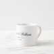 Elegant script and block text bride and groom with wedding location and date expresso mug.