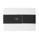 A mix of elegant white script and bold font. The bride and grooms names are featured on these black invitation belly bands. On the back the date of your wedding. To edit or delete the text click on the personalise button.