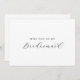 This elegant script bridesmaid proposal card is perfect for a simple wedding. The minimalist black and white design features fancy romantic typography with modern glam style. Customisable in any colour. Keep the design minimal and classy, as is, or personalise it by adding your own graphics and artwork. Customise the card with the name of the bride and the bridesmaid. Personalise the back of the card with a personalised message.
