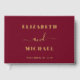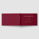 This elegant burgundy red wedding guest book features your choice of real gold, silver or rose gold foil, your names in classic serif typography joined together by "and" in a chic script with swashes, and your wedding date. Personalise the title on the spine.
