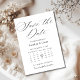 Announce your special day in timeless style with this elegant script Save the Date card. Featuring graceful calligraphy and a minimalist calendar design with your wedding date highlighted, this modern and sophisticated card is perfect for couples who appreciate classic simplicity. Ideal for fall weddings or romantic celebrations, fully customizable with your names, date, and location.