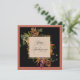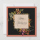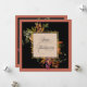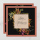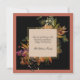 An elegant Thanksgiving flat greeting card has classic style and simple sophistication. The centre of the design has a square frame in light peach with Happy Thanksgiving text in elegant script calligraphy type face. A thin gold border surrounds the framed text with richly contrasting black and taupe-beige backgrounds. A terracotta border in a colour block style frames the card beautifully with autumn elegance. A lovely fall bouquet in watercolor mixed flowers adds the beauty of autumn colours to the design. The reverse side of the card has the same layout with custom text that may be personalised with your desired text and name(s). This card is a wonderful choice for both personal or business use.
