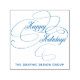 Winter holidays rubber stamp for business corporate seasonal mailings or gifts labels with "Happy Holidays" classy calligraphy script and your company name.