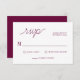 This Wedding RSVP Card features elegant script on chic burgundy background with modern minimalist approach. You can use design tool to change the font style and size. View other products from this collection.
