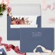 Elegant dusty blue envelope with delicate blush and burgundy floral detail inside. Outside flap modern hand written Script monogram area for you to add your name(s) and address.Part of our "Heaven in Rose Floral and Dusty Blue" wedding and events collection.