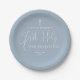 Elegant Script Dusty Blue First Holy Communion Paper Plate