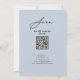 Elegant Script Dusty Blue Minimalist QR Code Rehearsal Dinner Invitation Card. Celebrate your special day with this elegant and beautiful wedding invitation card to beautify your special occasion. All the texts are pre-arranged for you to personalise easily and quickly with your own details. If you need further customisation or matching items, please let us know – we would love to help.
