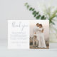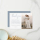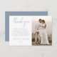 This simple elegant wedding thank you card features a photo and dusty blue colour theme. The photo is for placement purposes only and can be replaced with any photo of your choice. Customise the text with your own personal thank you message for all your wedding guests. #weddingthankyou #dustybluewedding