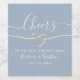 Modern, minimalist, elegant, simple handwritten calligraphy script dusty blue wedding wine label with gold rope heart. Cheers to the Love and Happiness.