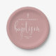 Elegant Script Dusty Rose Pink Baptism Paper Plate