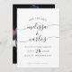 This simple black and white photo save the date features your names in elegant script calligraphy with flourishes and classic typography, and your favourite engagement photo on the back, and is easy to customise with your own wedding information. This is the perfect save the date for a formal, romantic, classic, or modern wedding.