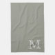 Elegant Script Evergreen Fog Monogram kitchen towel