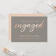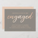 This elegant and simple engagement announcement features a faux foil script font in a pretty grey and rose gold colour palette.