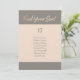 This elegant and simple table seating card features a faux foil script font in a pretty grey and rose gold colour palette. Customise the table number and names.