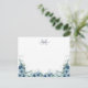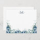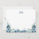 Elegant Script Floral Dusty Blue Monogram Note Card