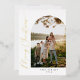 This holiday card features a simple, elegant design and an arched photo with gold foil wording. This gorgeous modern minimal Christmas card allows a section to upload your own perfect picture to the font & back.